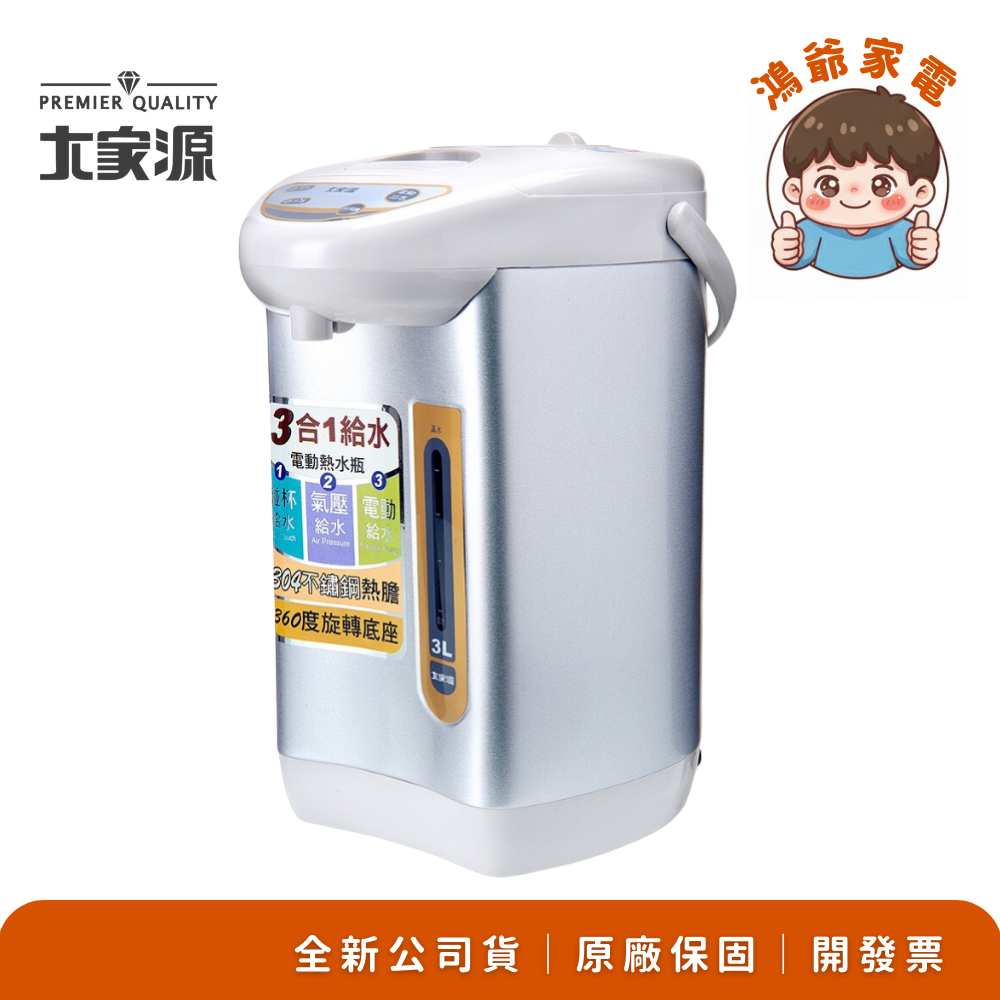 促銷✨公司貨附發票✨【大家源】3L三合一給水電動熱水瓶 TCY-2033 氣壓 電動 碰杯給水 停電可用