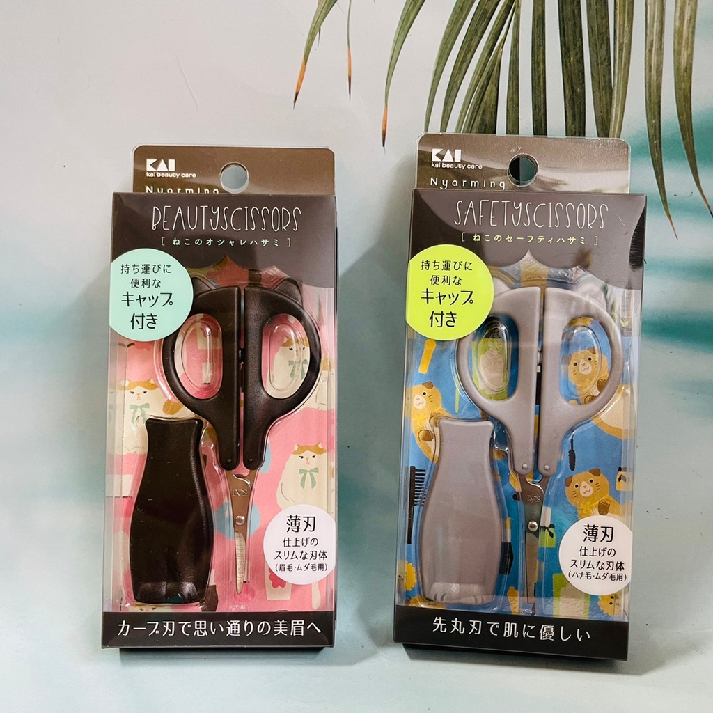 日本 KAI 貝印 貓咪時髦鼻毛剪(附蓋) HC-2201黑/HC-2202灰 眉毛剪 薄刃