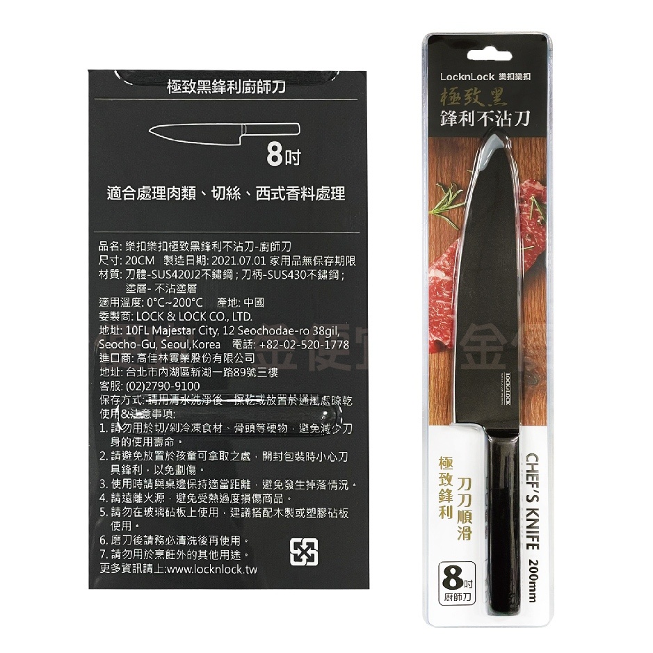 金便宜批發 樂扣 極致黑 鋒利不沾刀 5吋 水果刀 7吋 三德刀 8吋 廚師刀 菜刀