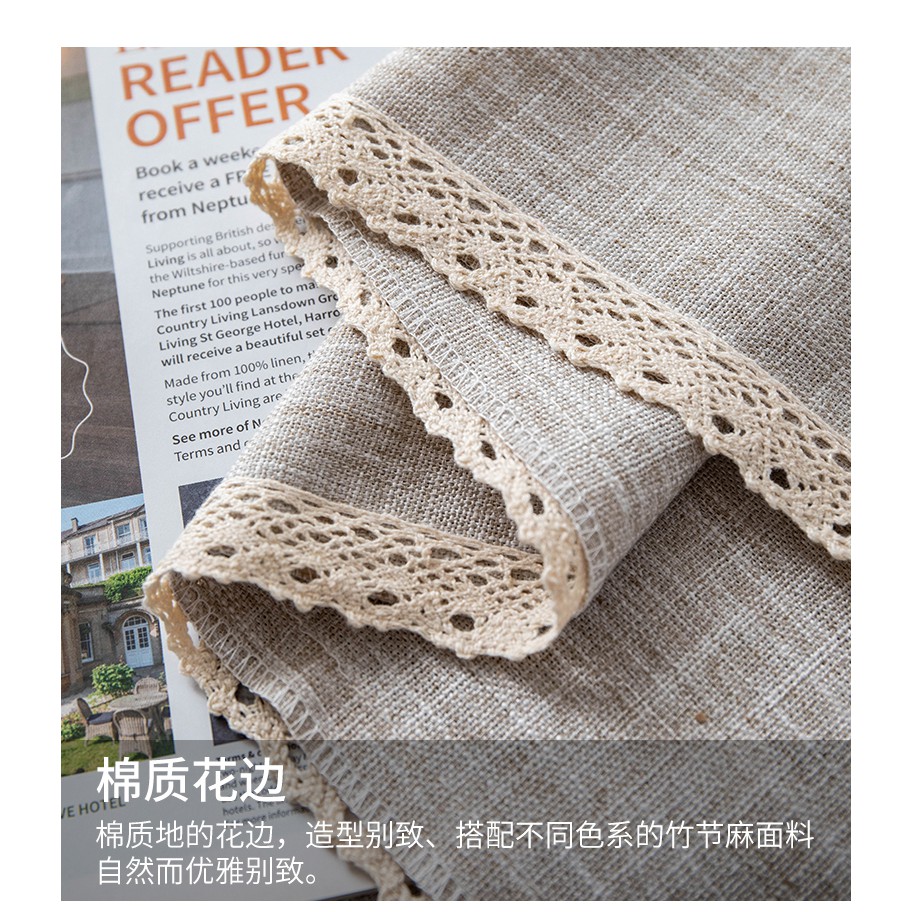 日韓 棉麻桌布桌巾 繡花花邊流蘇桌布 長方形餐桌布棉麻桌巾 茶几蓋巾 可客製化