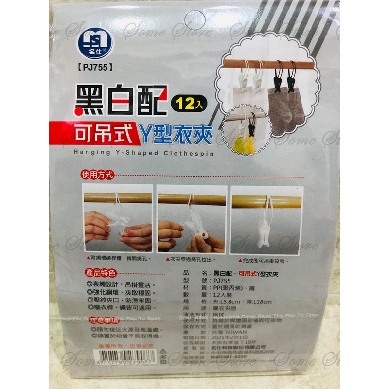 ~傳家寶~ 名仕 PJ755 可吊式Y型衣夾 12入 黑白配 曬衣夾 晾曬夾 衣夾