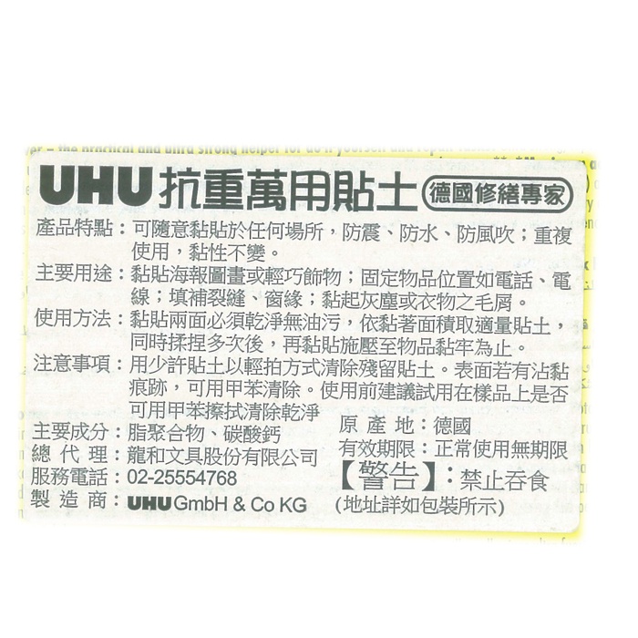 德國 UHU 抗重 萬用貼土 萬用黏土 耐重4kg /包 UHU-056 (40790)