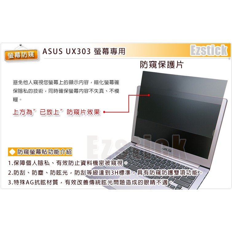【Ezstick】ASUS UX303 UX303UB UX303LB UX303LN 筆記型電腦防窺保護片(防窺片)