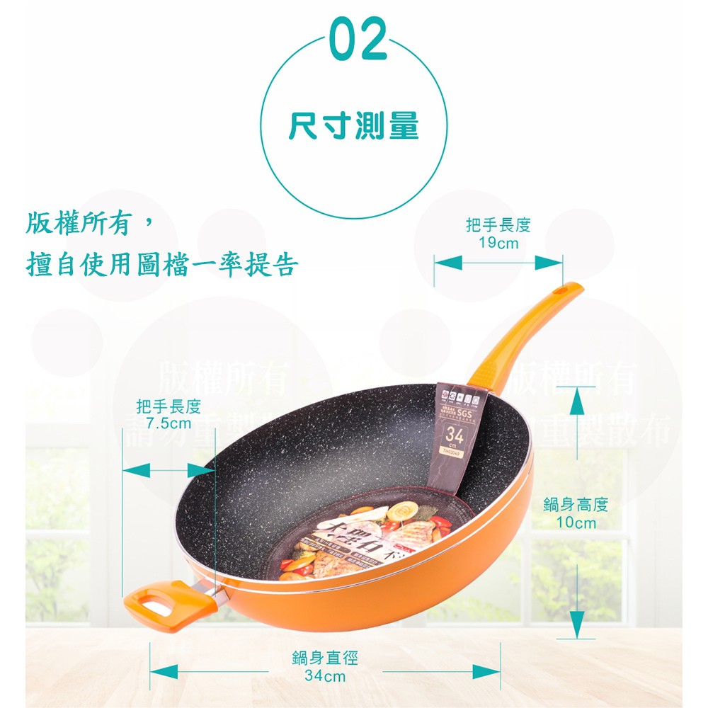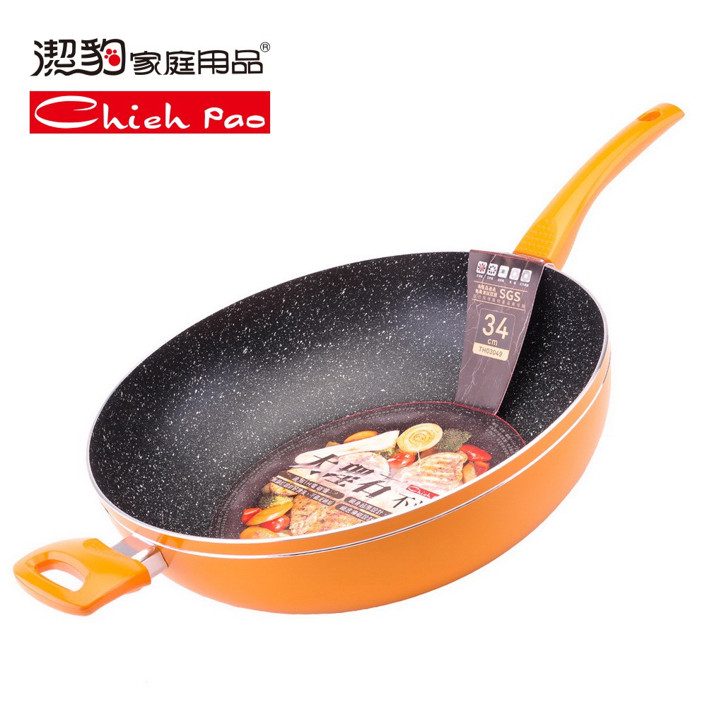 【潔豹】大理石不沾炒鍋 34CM (導磁不銹鋼加底 IH電磁爐可用、平煎鍋、不沾鍋、單柄鍋)