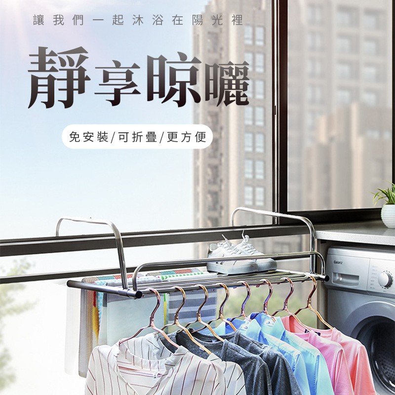 加厚不鏽鋼伸縮陽台晾曬架 晾衣架 窗台置物架 晾衣服掛架 曬鞋架 曬衣架 SA6701D-1 現貨 廠商直送