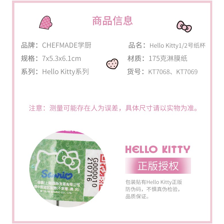 (烘焙廚房)Chefmade學廚KT7069正版HelloKitty耐高2號溫瑪芬蛋糕紙杯25個加插卡kt7069