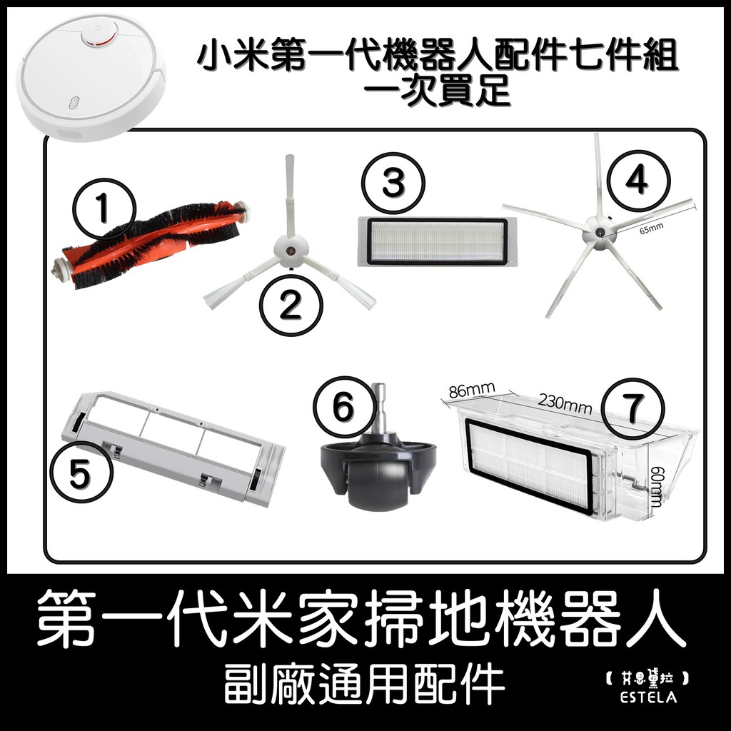 【艾思黛拉】配件組合 副廠 現貨 第一代小米 掃地機器人 拖地機 主刷 邊刷 水洗集塵盒濾網 全系列配件 SDJQR01