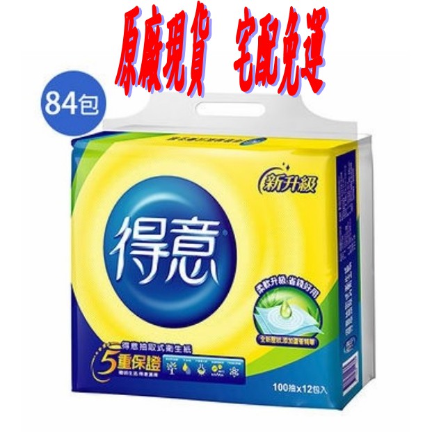 宅配免運 工廠直出 得意抽取 抽取式衛生紙100抽-84包