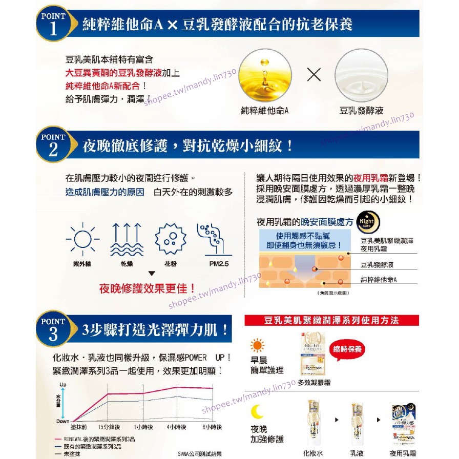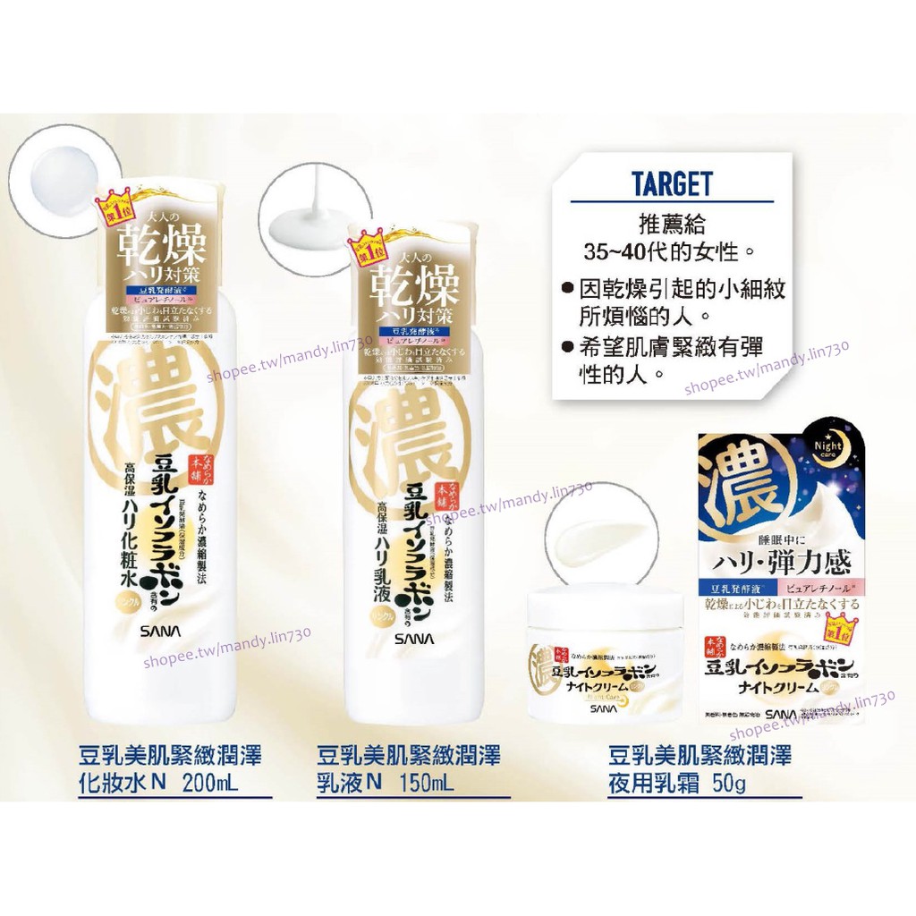 日本 莎娜【現貨出清】SANA 豆乳美肌 緊緻潤澤化妝水/緊緻潤澤乳液/緊緻潤澤夜用乳霜 不黏膩 給予肌膚水分補給