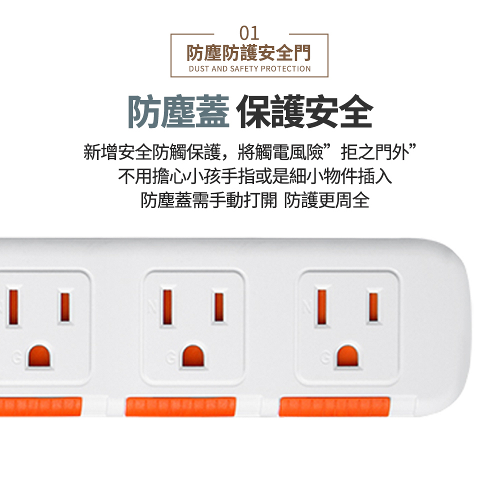 (安全防護蓋設計) 包爾星克 新安規總開關3插4插6插座延長線防雷擊防突波防塵蓋家用插座群加原廠電源線