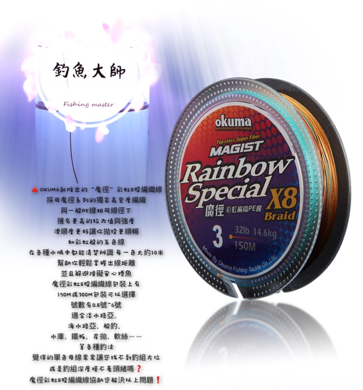 【釣魚大師 Fm 】魔徑 🌈Rainbow spx8 彩色8股編織線 Okuma 寶熊✨