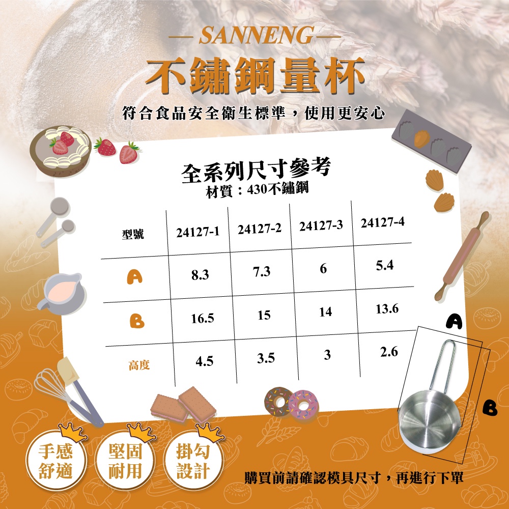 👑PQ Shop👑三箭牌現貨 不鏽鋼4PCS量杯 240ml 120ml 80ml 60ml 24127