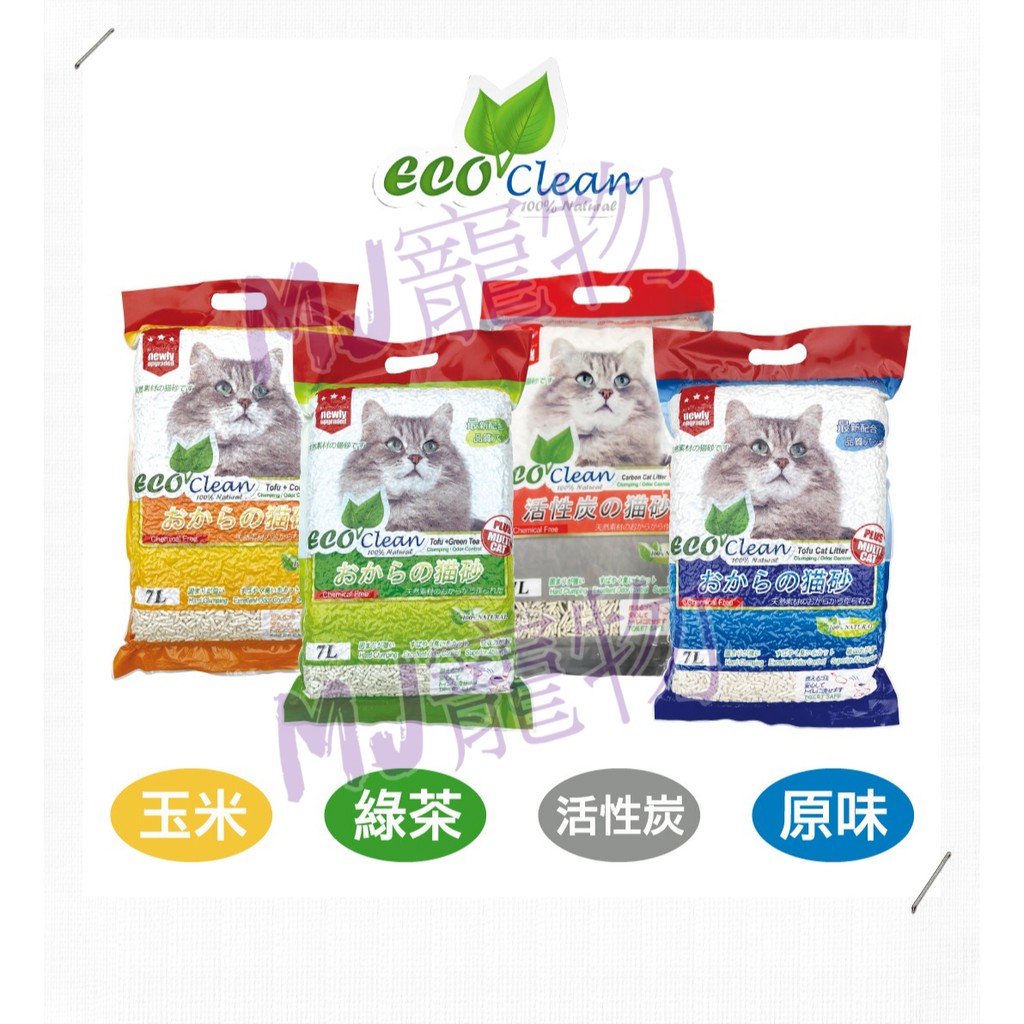 <MJ寵物>艾可 Eco Clean 天然環保 豆腐貓砂-原味/玉米/綠茶/活性碳7L