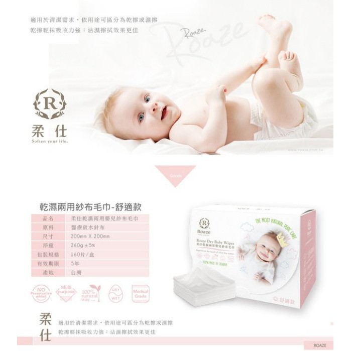 柔仕 舒適乾濕兩用嬰兒紗布毛巾 (160抽)