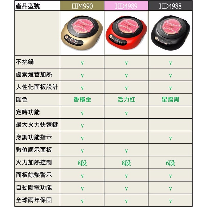 【24小時出貨★關注折10$】Philips 飛利浦 不挑鍋 黑晶爐 HD4988 火鍋 煮水 公司貨