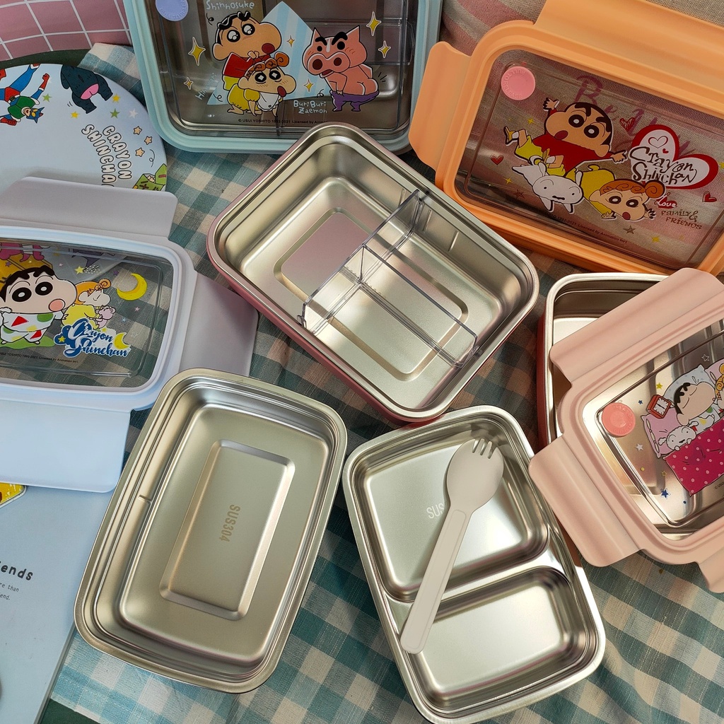 💗正版現貨💗蠟筆小新 不鏽鋼 防燙 隔熱便當盒 304不鏽鋼 環保餐盒 野餐 外帶餐具 耐熱 餐盒 保鮮盒 便當盒 飯盒