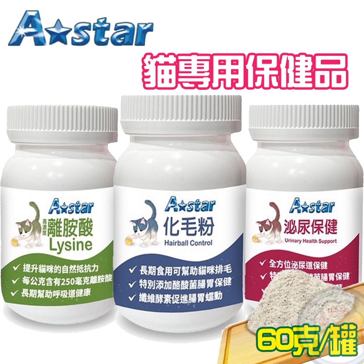 【贈貓肉泥】Astar 貓咪保健品/60g(全齡貓適用) 泌尿道保健品 貓咪營養品 貓咪化毛粉 貓咪離胺酸 貓排毛粉