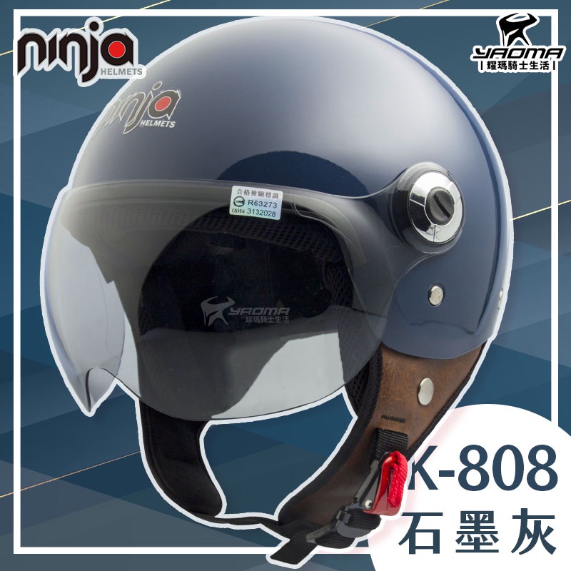 KK 安全帽 K-808 808 素色 石墨灰 飛行帽 亮面 3/4罩 半罩帽 排齒扣 W鏡片 華泰 通勤帽 耀瑪騎士