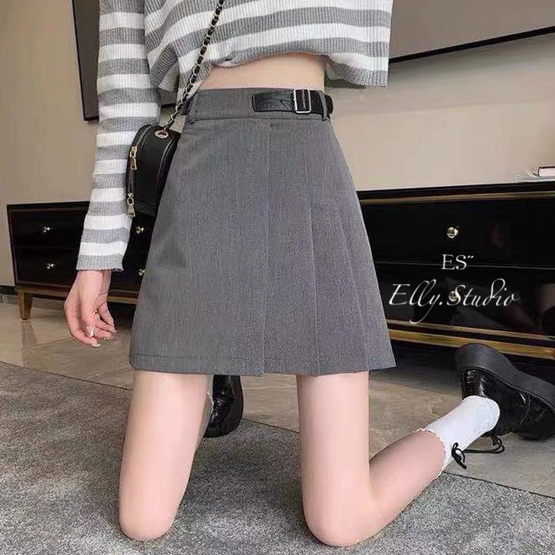 【Elly.Studio】❤️現貨杏S+預購❤️不規則百褶短裙(黑/杏/灰S-XL)辣妹高腰西裝質料顯瘦裙