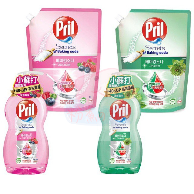 淨麗Pril 小蘇打高效洗碗精 瓶裝750ml 補充包1L 莓果/草本/檸檬/植純萃檸檬草 現貨