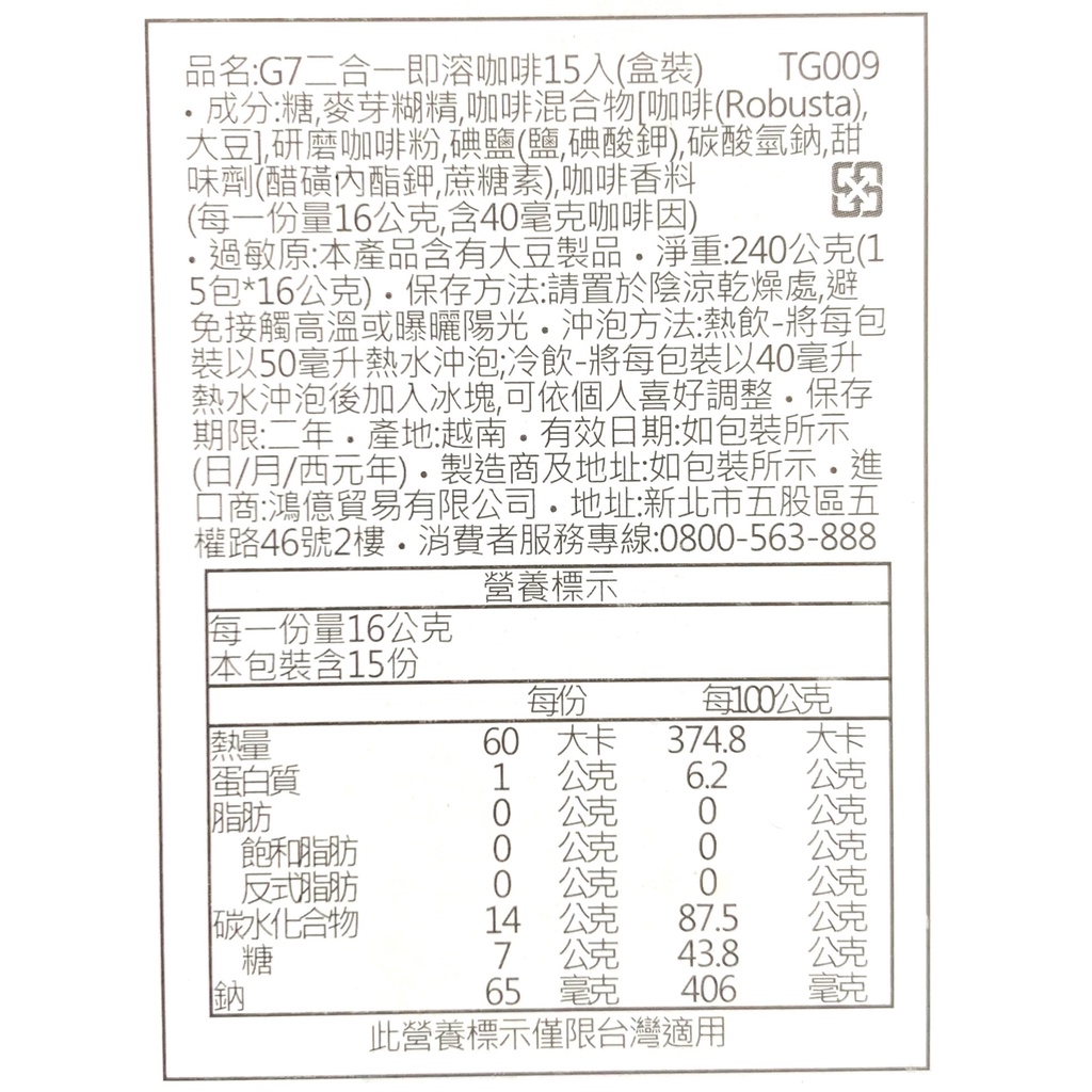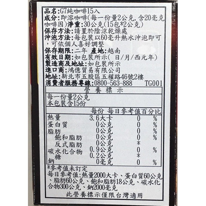 越南G7 黑咖啡 二合一 三合一 即溶咖啡