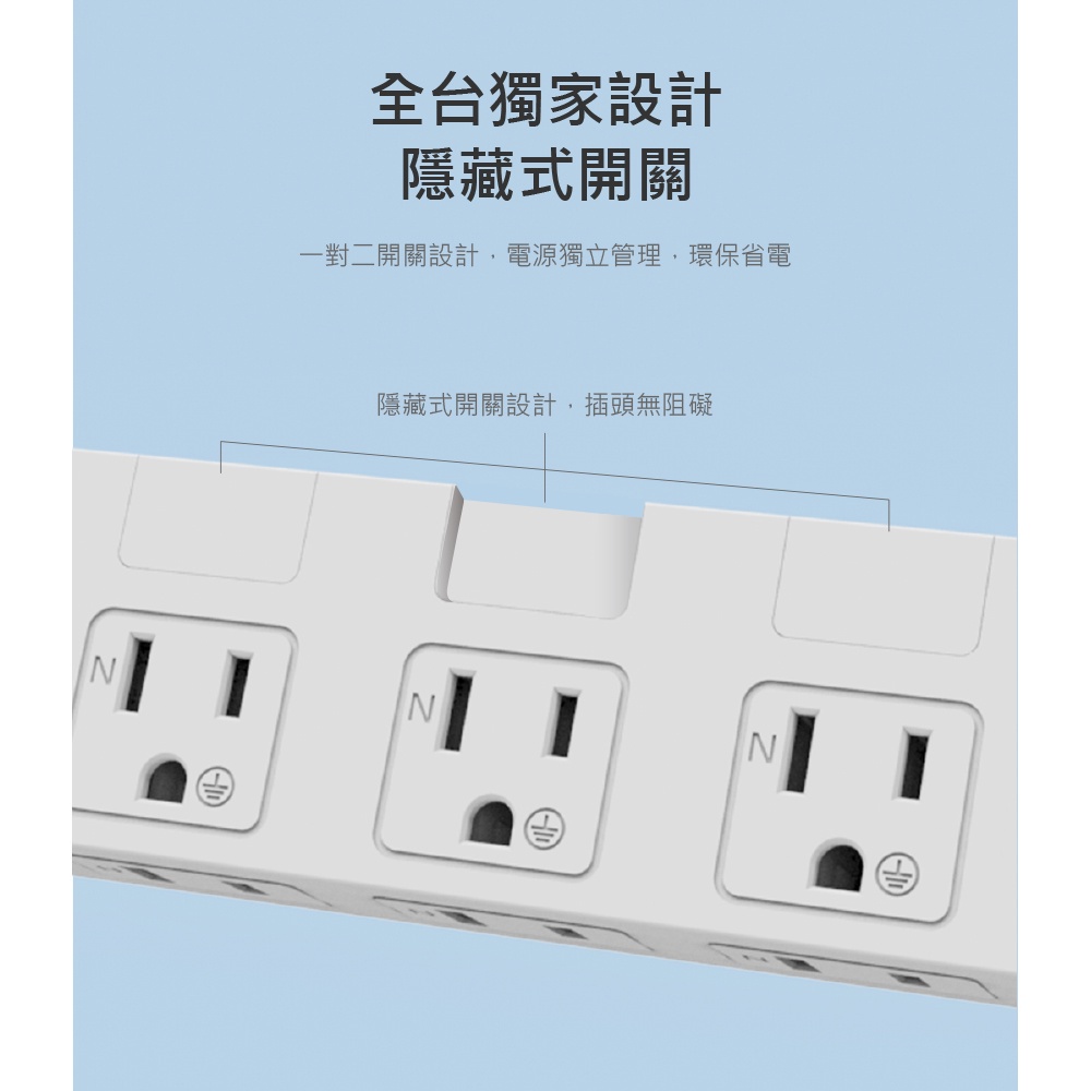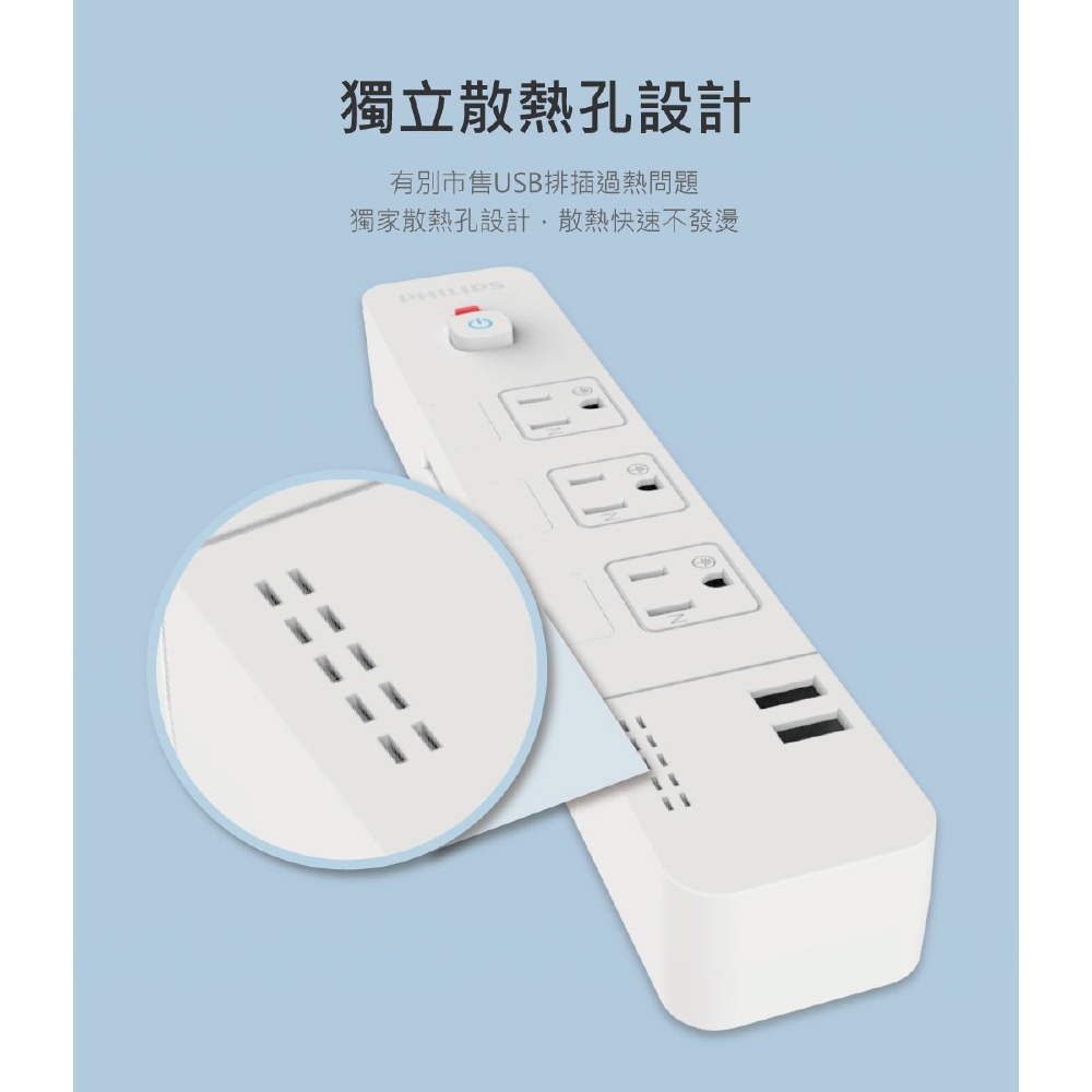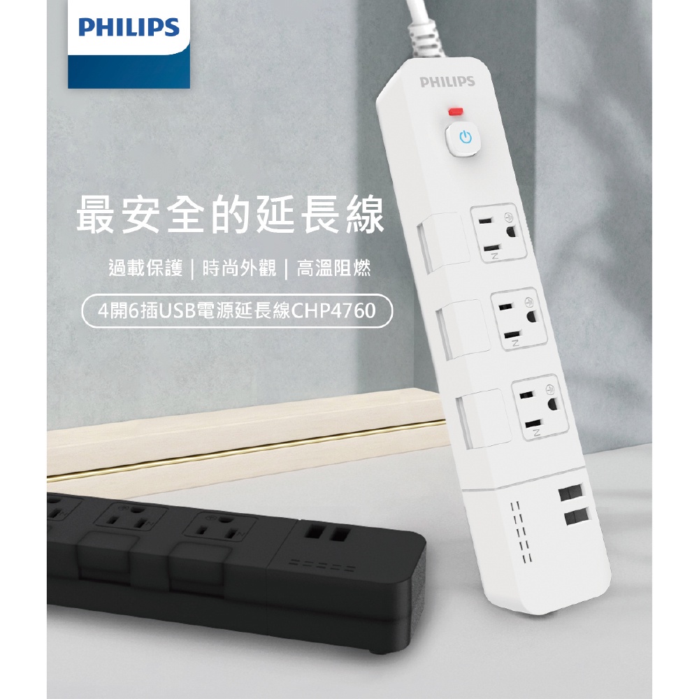 PHILIPS 飛利浦 CHP4760 4切6座+雙USB延長線 1.8M 安全延長線 隱藏式開關設計