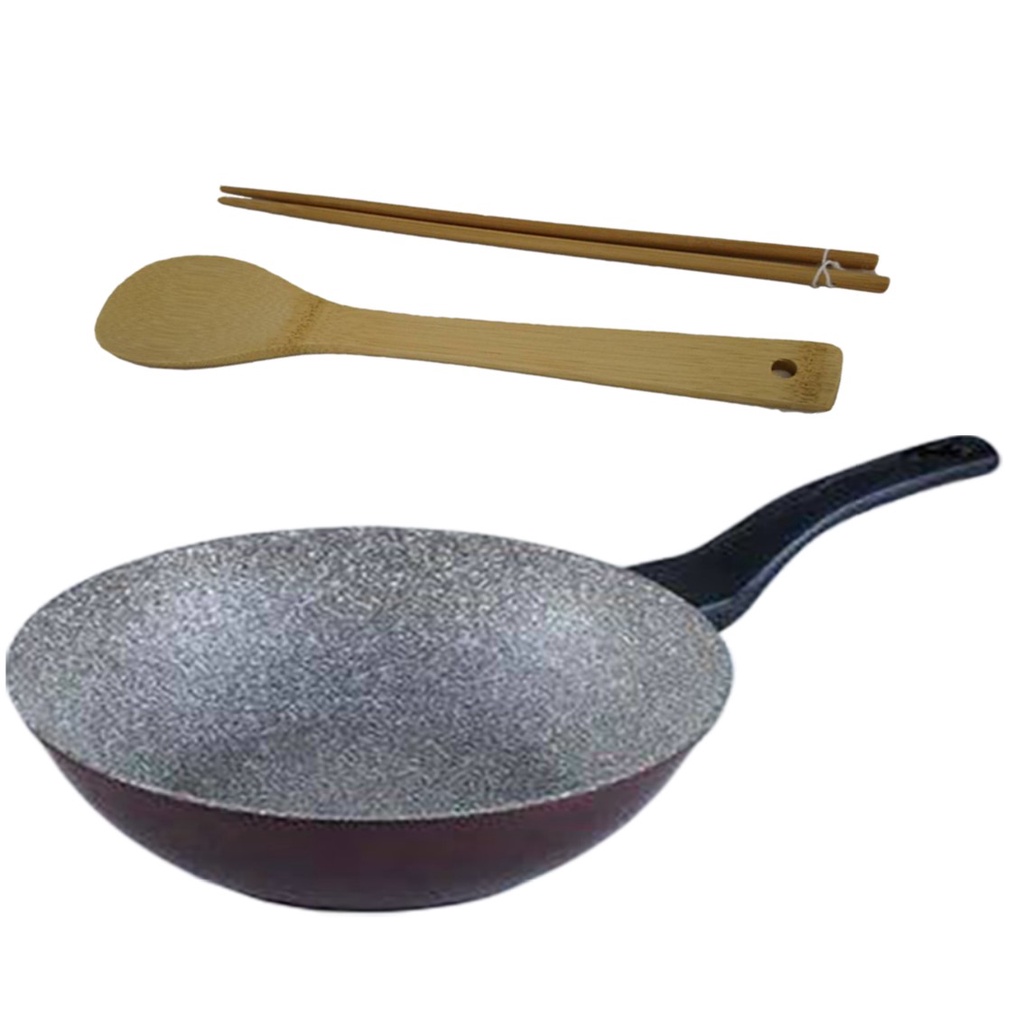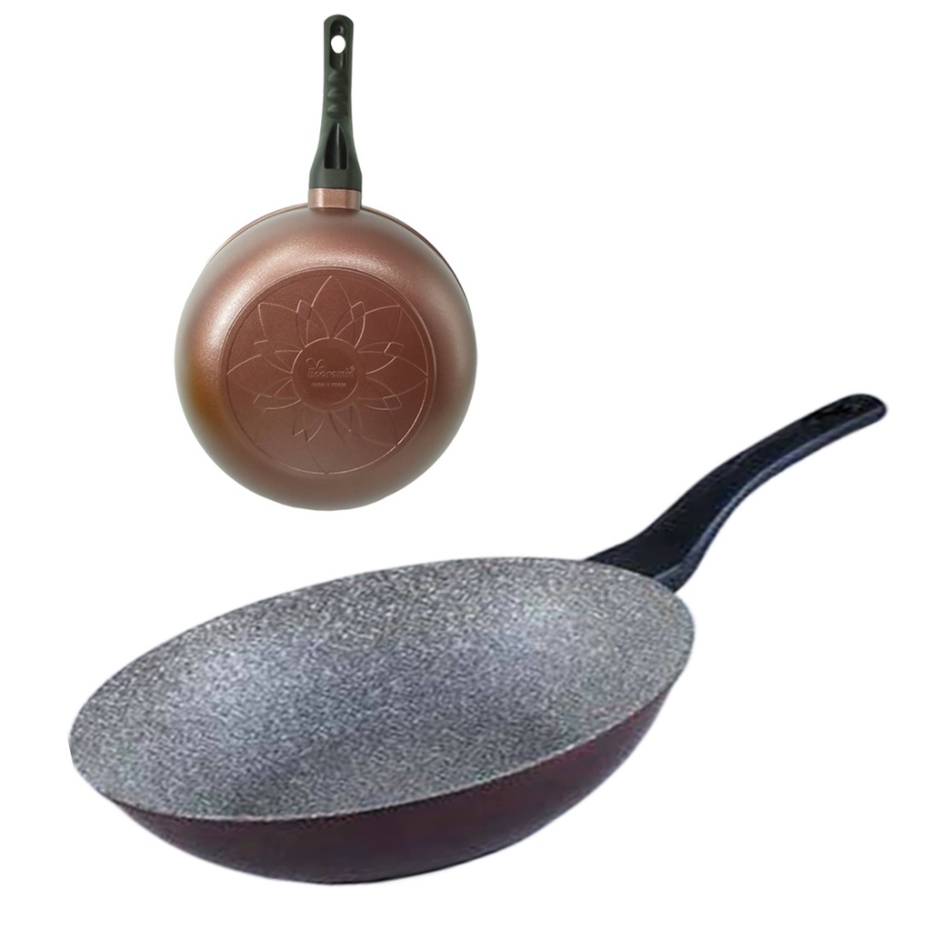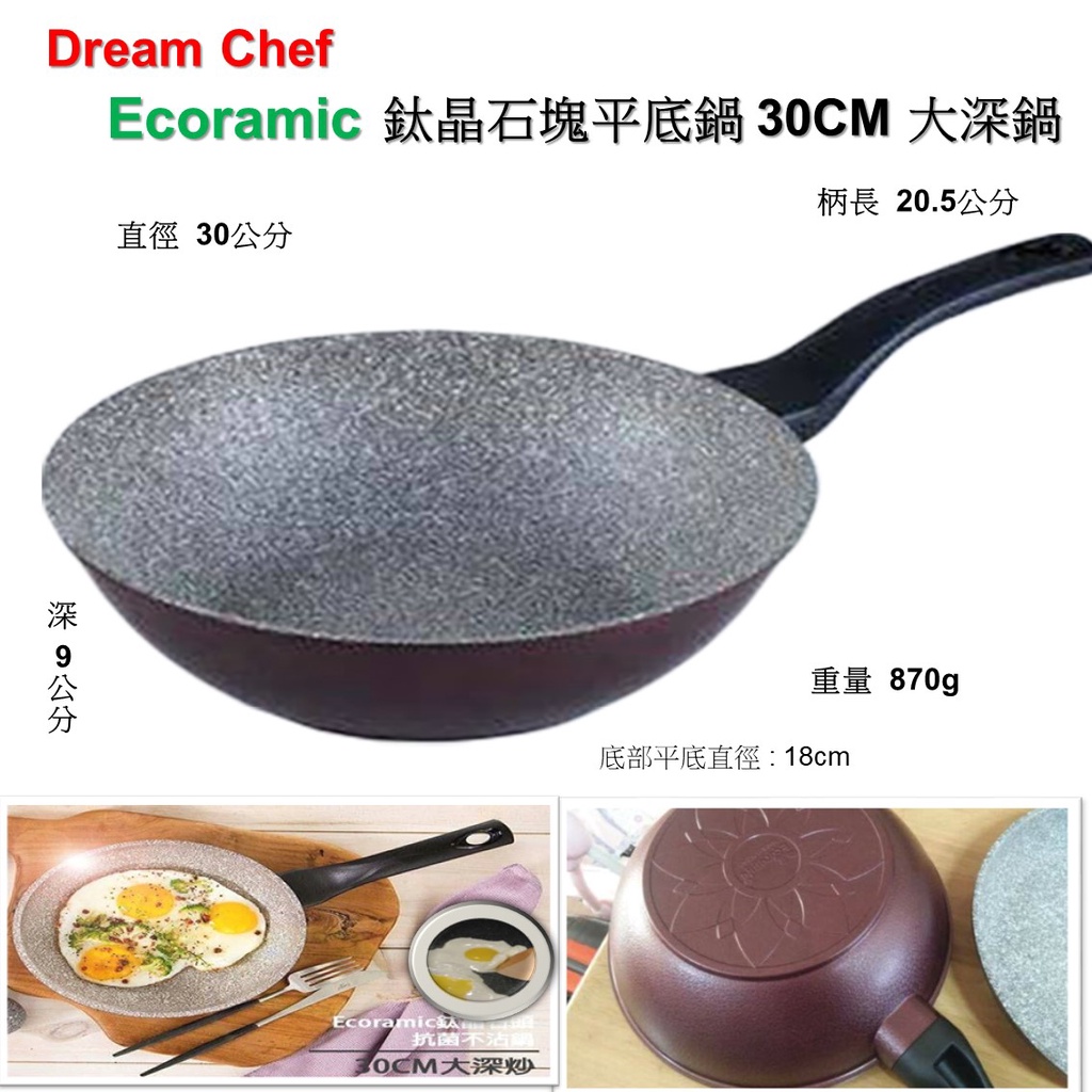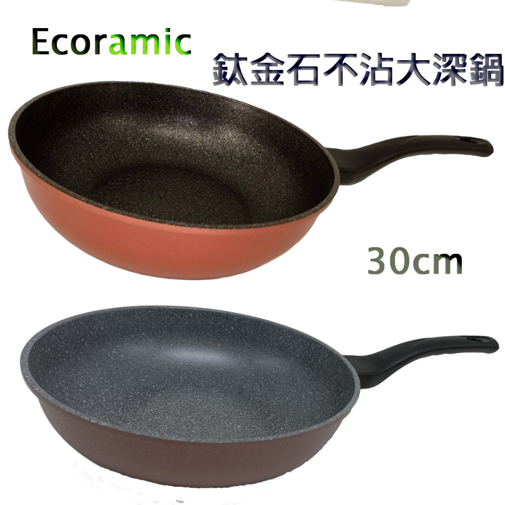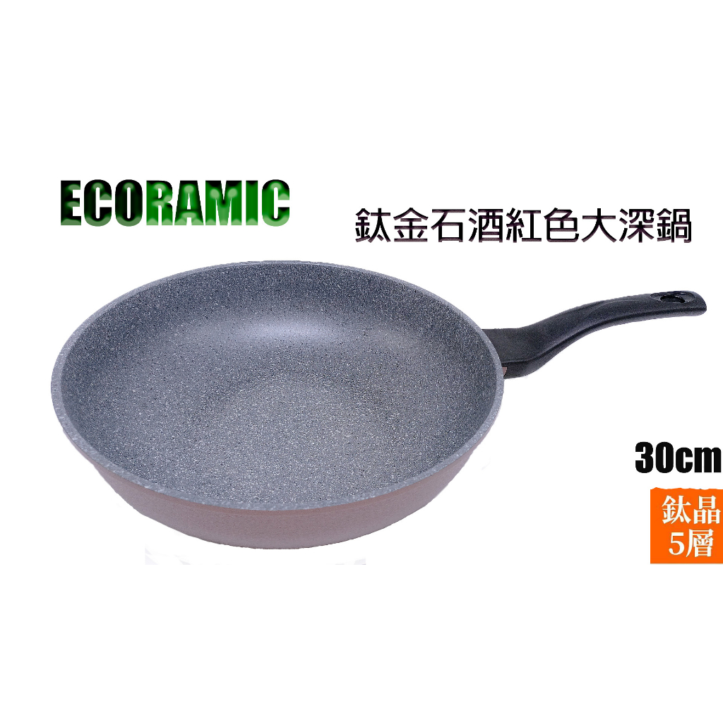 韓國ECORAMIC鈦晶石頭 抗菌 不沾鍋 大深平底鍋 - 30CM 大深鍋 炒鍋 酒紅色/珊瑚粉色/紅色