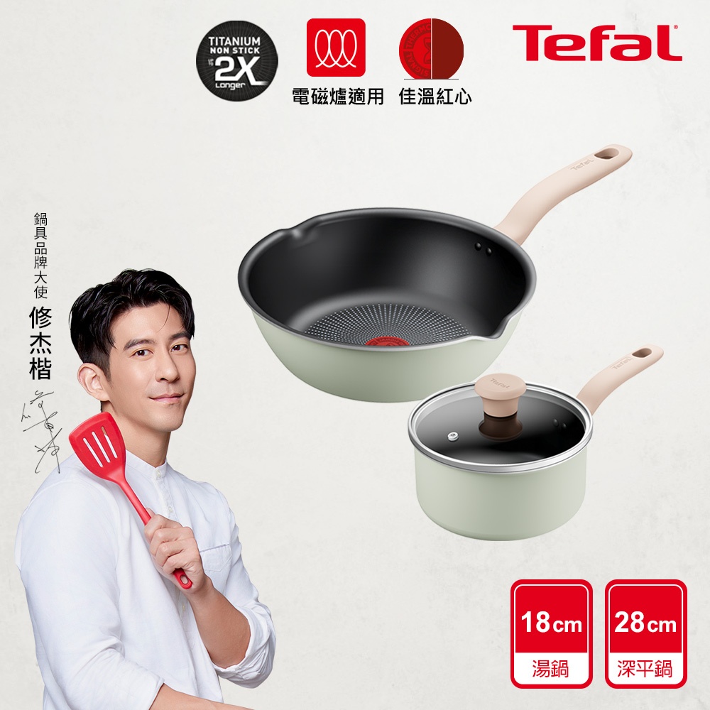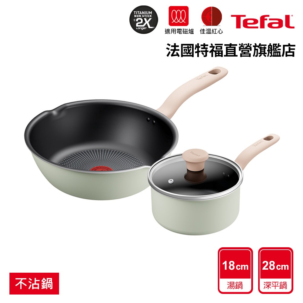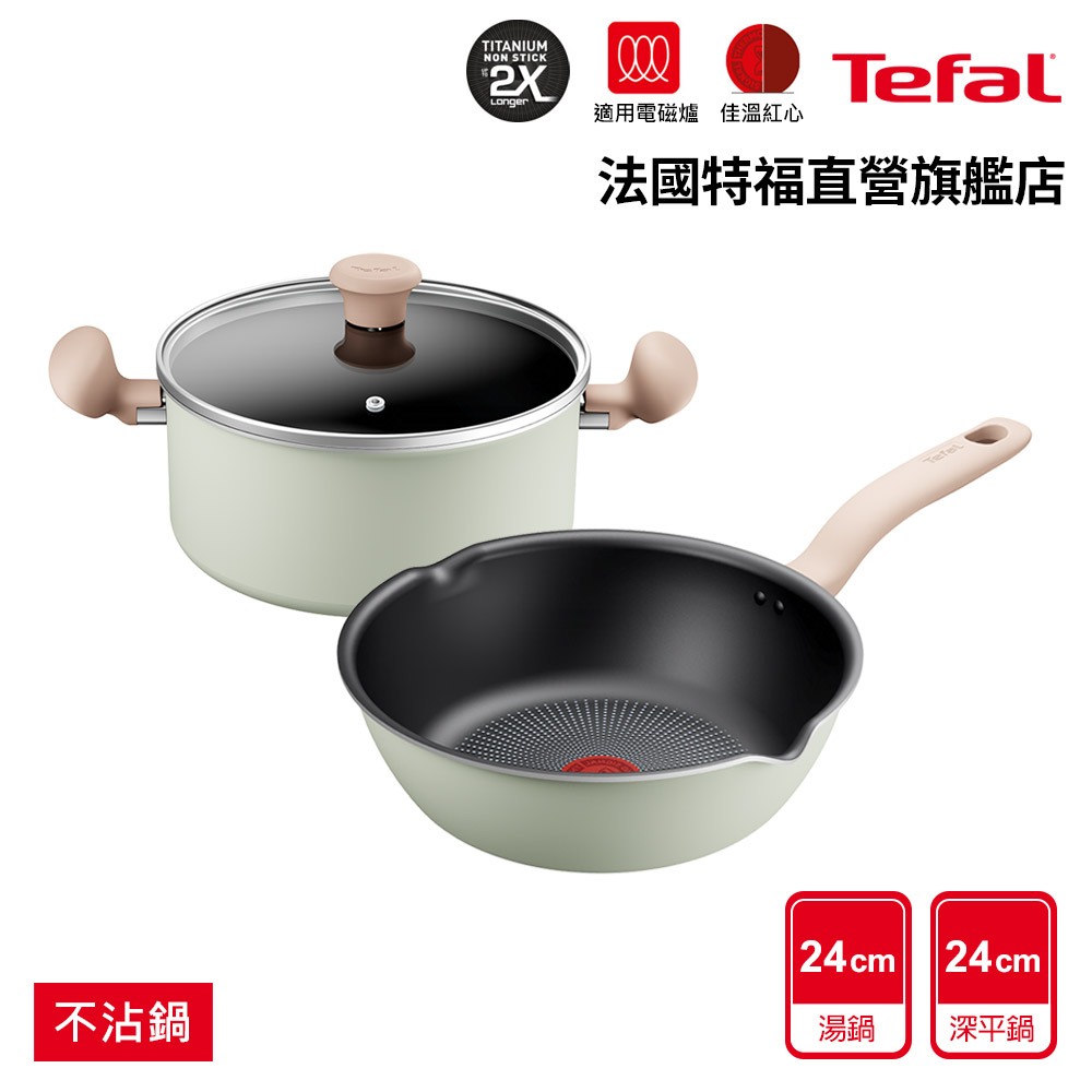 Tefal法國特福 抹茶時光系列 24CM/28CM不沾深平鍋+18CM/24CM湯鍋(電磁爐適用)(2入組任選)