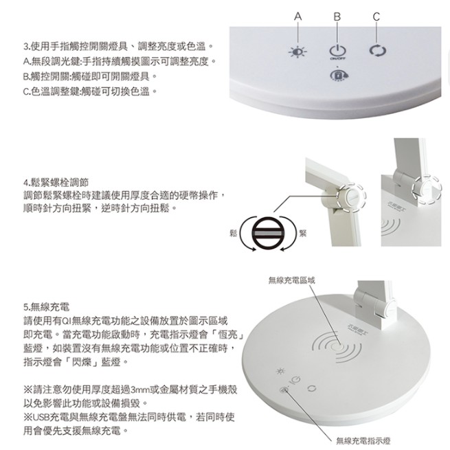 🔥可刷卡免運🔥太星電工 檯燈 好視力LED 無線充電護眼檯燈 5W 白色UTA968W 無線充電盤 可幫手機充電