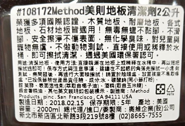 好市多代購-美則天然地板清潔劑2公升