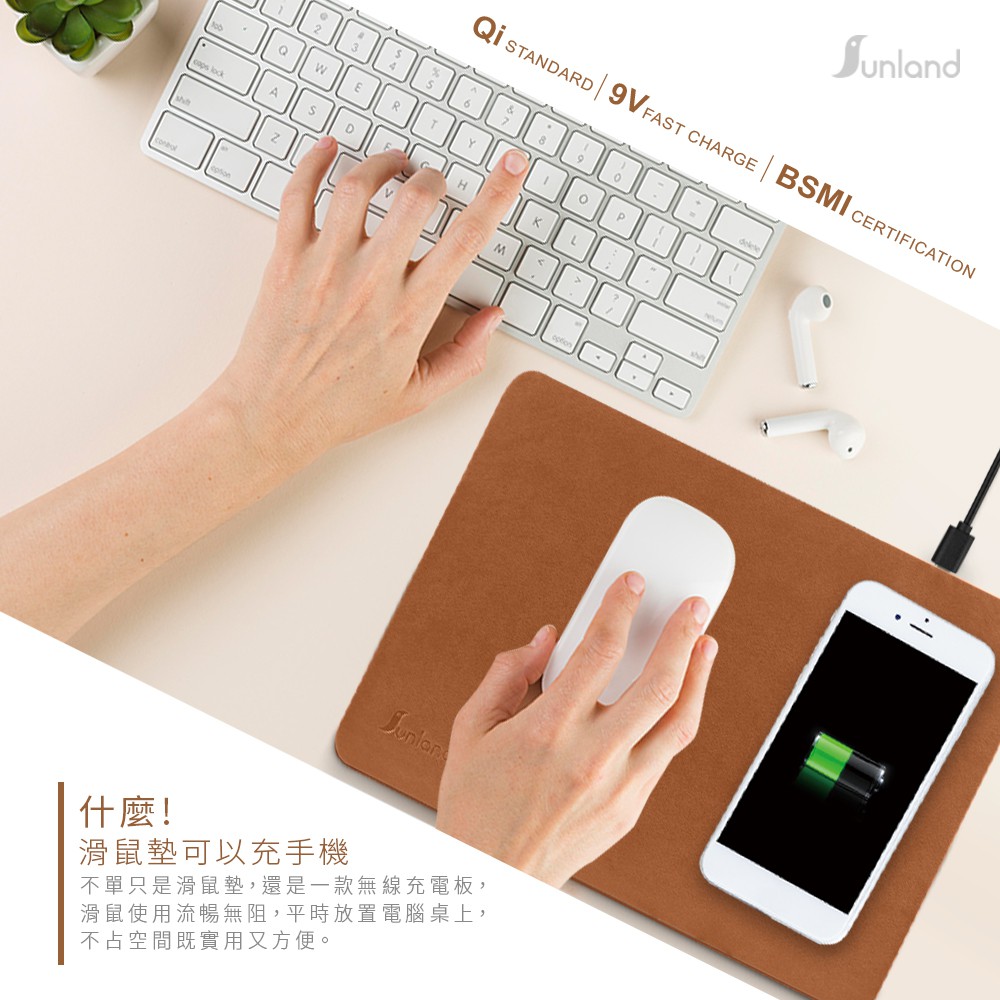 Sunland DE027 / 無線快充皮革滑鼠墊 (福利品 表面微瑕疵)