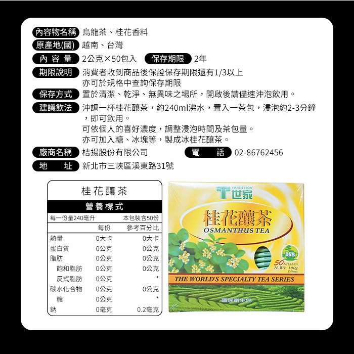 T世家 桂花釀茶 (2g×50入/盒裝)★ 妍選
