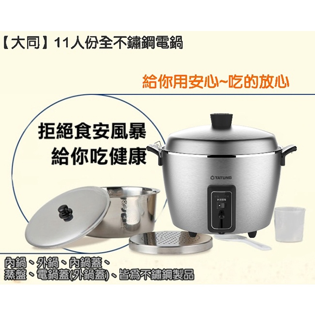 TATUNG 大同 TAC-11J-MM 11人份 全不鏽鋼 電鍋 110V