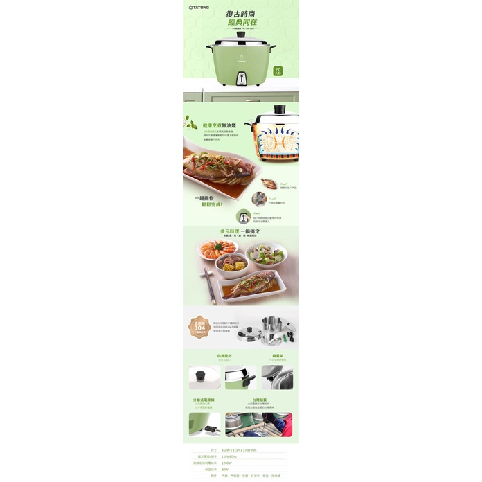 TATUNG 大同 TAC-20L- DRU/DGU 20人份不鏽鋼內鍋電鍋 -大同寶寶剪影款