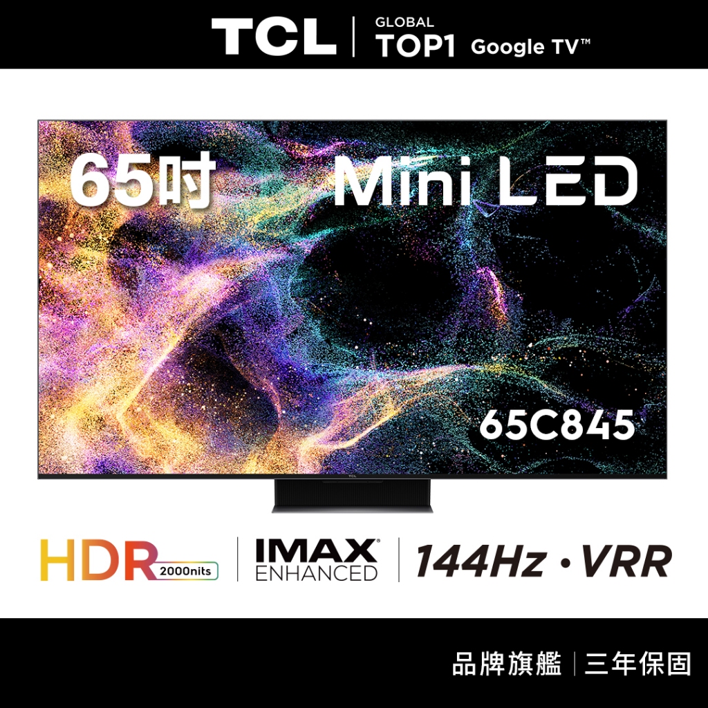 TCL 65吋 C845 Mini LED Google TV 量子智能連網液晶顯示器【含簡易安裝】65C845