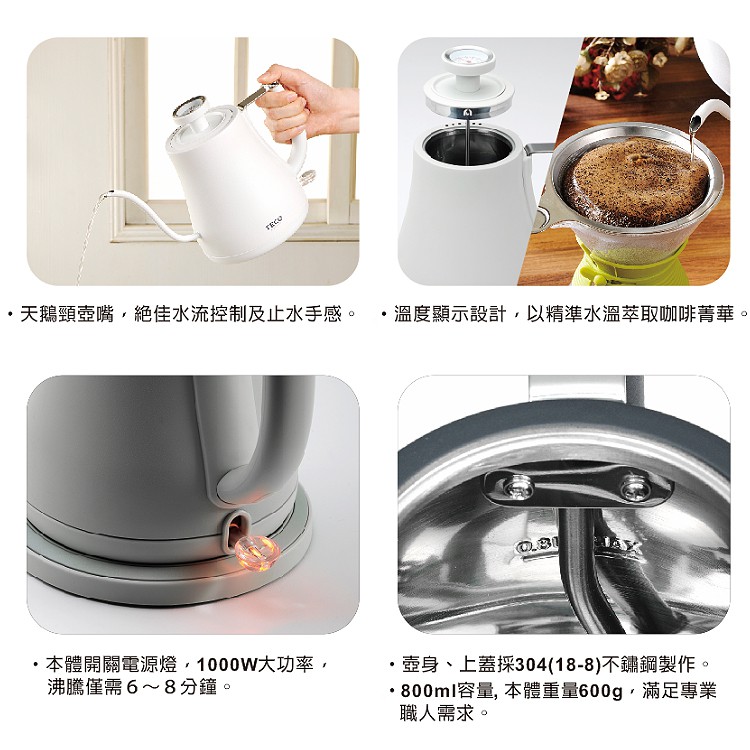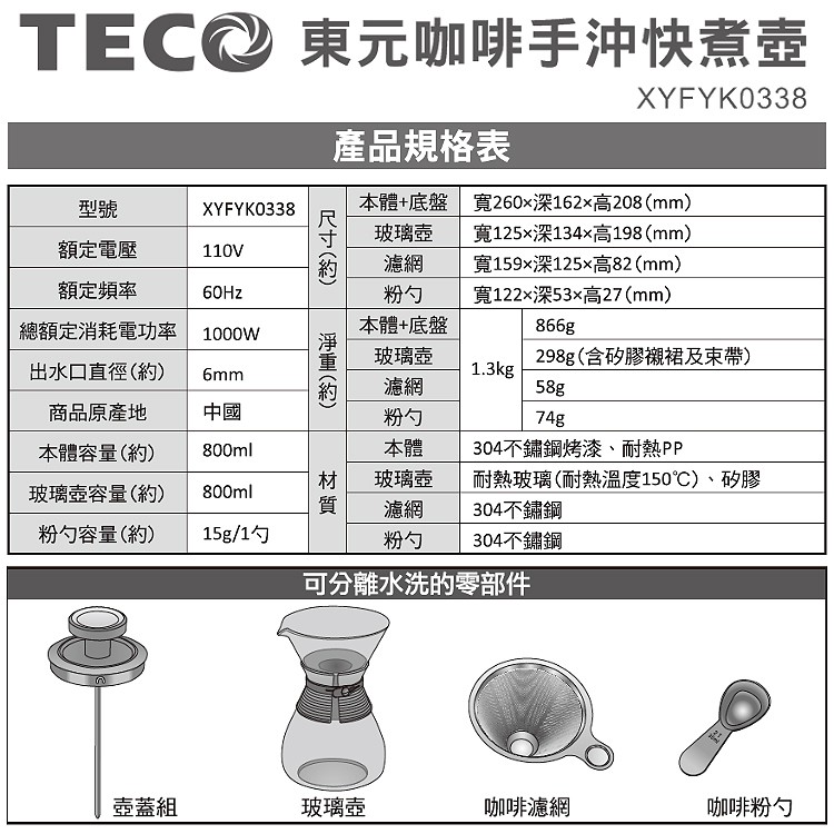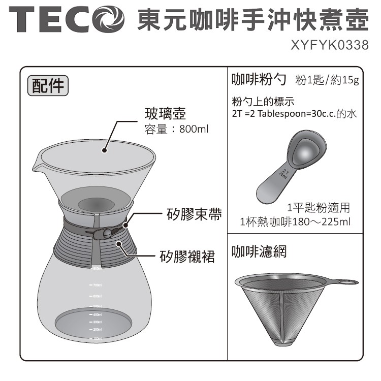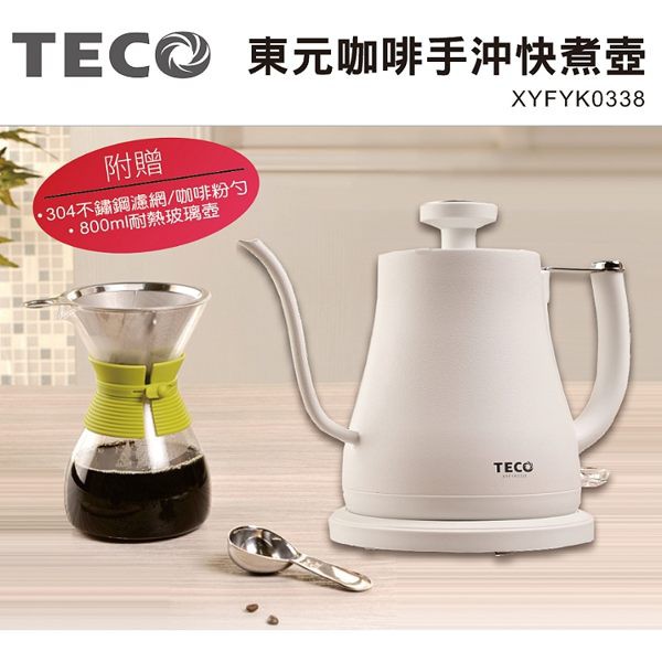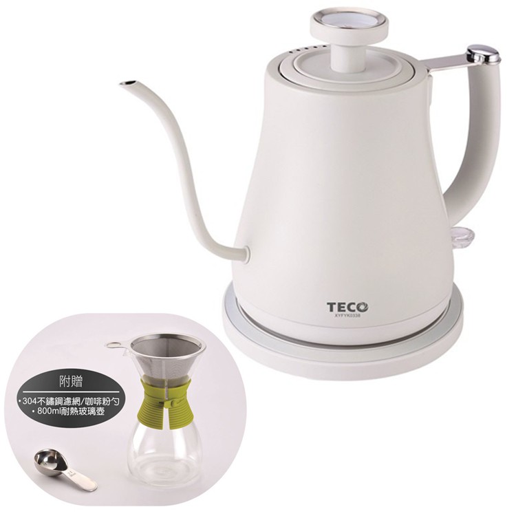 TECO 東元 304不鏽鋼 鵝頸壺 手沖咖啡壺 快煮壺 送玻璃壺 XYFYK0338
