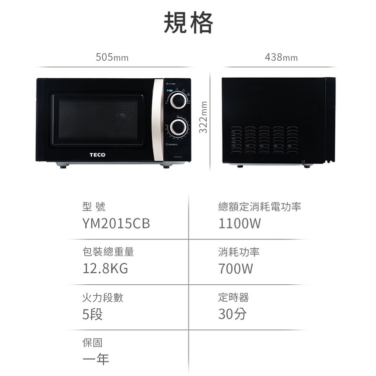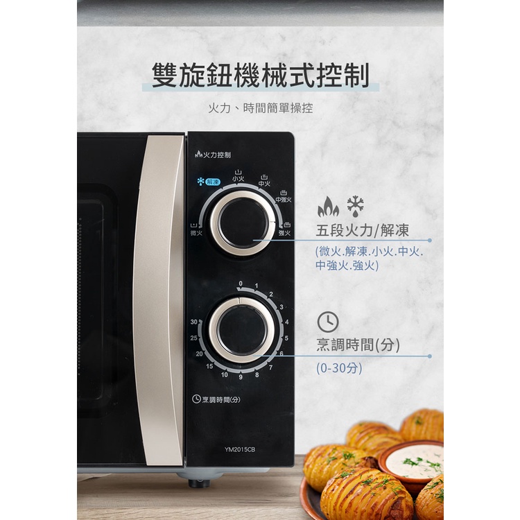 TECO 東元 YM2015CB 微波爐 20L 平台式 機械式 5段火力
