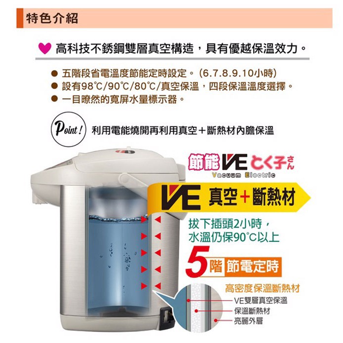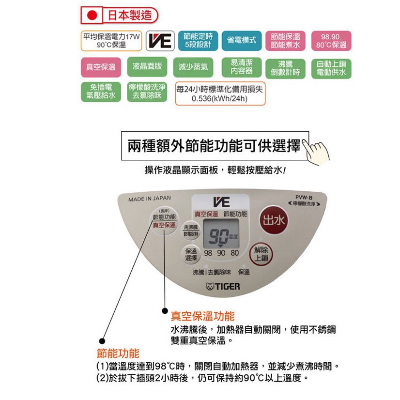 TIGER虎牌 VE真空電熱水瓶 PVW-B30R 現貨 廠商直送