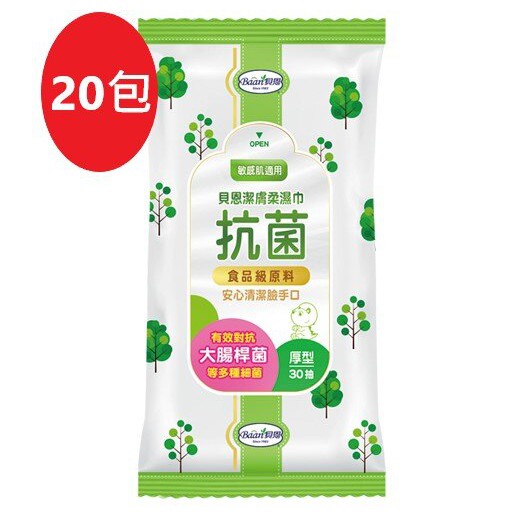 最新效期 箱購下殺1299 免運 貝恩Baan 貝恩柔濕巾 80抽24包 20抽 潔膚抗菌 新生賀禮 貝恩濕紙巾