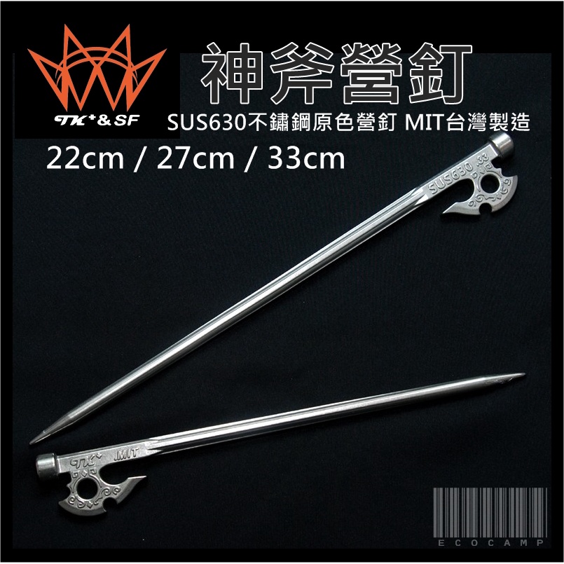 TKS 露營神器 神斧釘〈原色〉22cm/27cm/33cm/ SUS630不鏽鋼/MIT台灣製造【艾科戶外】