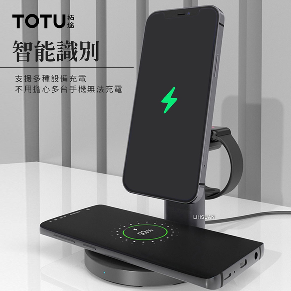 TOTU 三合一 QI無線充電盤磁吸充電器充電座支架 LED 手錶/耳機/手機 通用 MagSafe 兼容 極速 系列