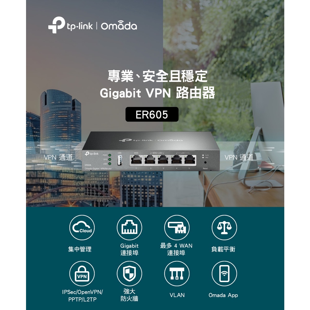 TP-Link ER605 SafeStream Gigabit 多 WAN Omada Gigabit VPN 路由器