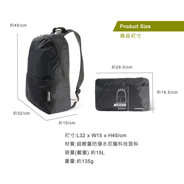 TUCANO COMPATTO 超輕量防潑水尼龍折疊收納後背包