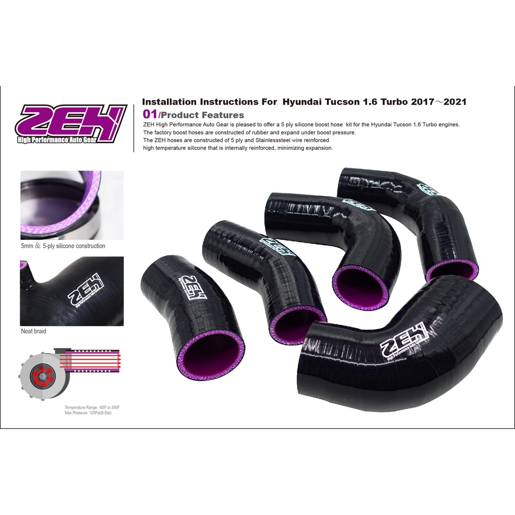 TUCSON 1.6T ZEH強化矽膠渦輪管
