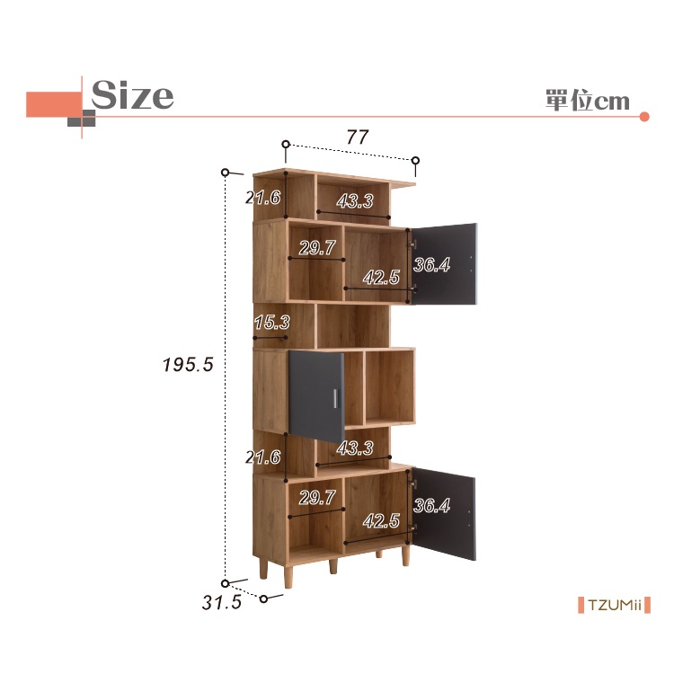 TZUMii洛克不規則三門櫃 書櫃 收納櫃 置物櫃 大容量書櫃 多功能櫃