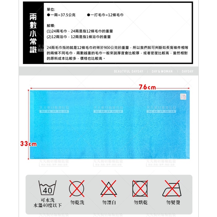 [99951]28兩毛巾(湖水藍色)12條/包(台灣製)無印字[99951]