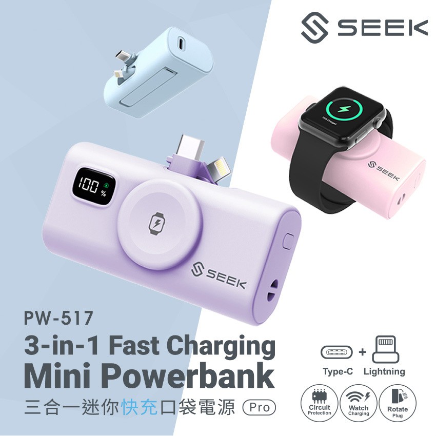 SEEK 三合一迷你快充口袋電源Pro -手機+手錶(PW-517)Type-C及Lightning 現貨 廠商直送