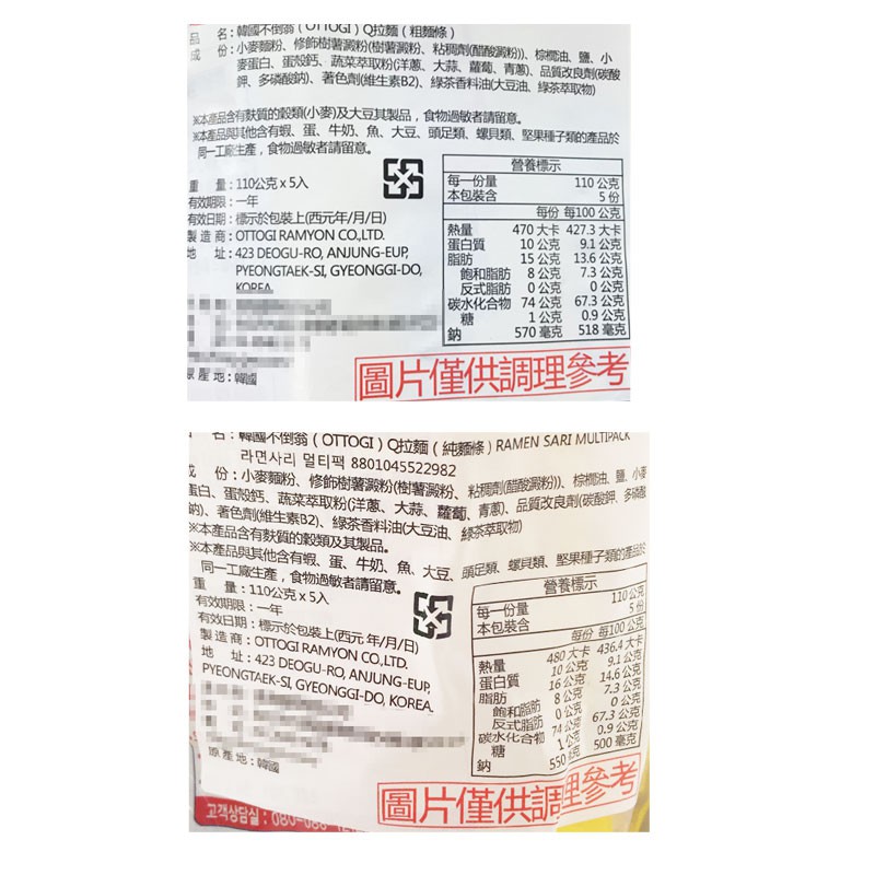 韓國 OTTOGI 不倒翁 Q拉麵 單包入 袋裝五包 無調理包 純麵條 拉麵條 拉麵 麵條 泡麵