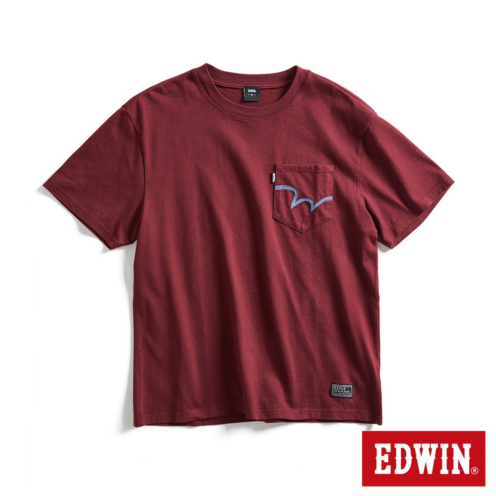 EDWIN 男款 EDGE系列 經典W縫線寬版口袋短袖T恤(朱紅色)