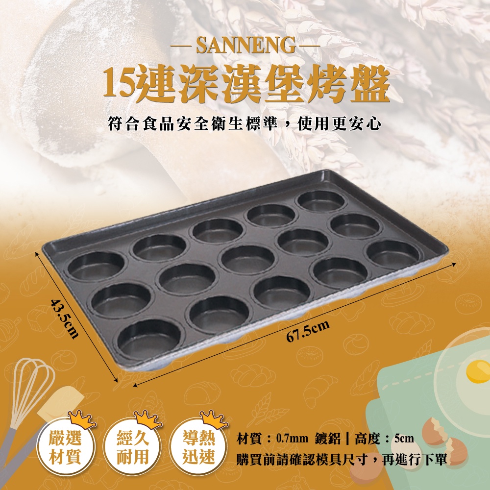 🦄自由之丘🦄三能SANNENG 15連深漢堡烤盤(1000系列不沾) 675x435x50mm SN1624 台灣公司貨